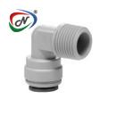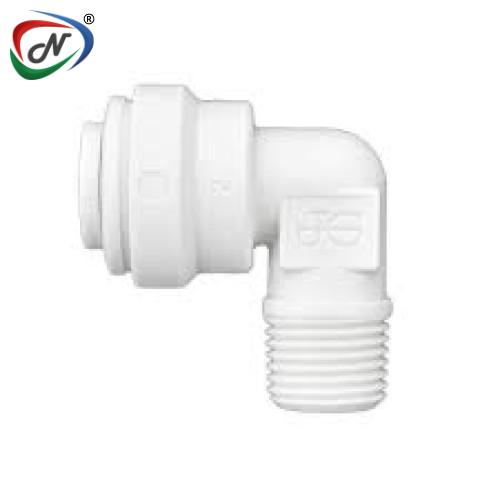 John Guest grey push-fit acetal rigid elbow (NPTF thread) fitting connects two imperial pipes to form a 90° pipe bend. Fast and simple to install, John Guest push-fit fittings create an instant push-fit connection and leak tight seal without the need for tools, hot works or sealing agents.