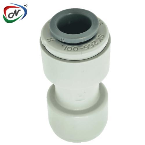 For connecting OD tubing sizes. Makes installations quick and easy. JG Push-fit technology makes connecting tubing quick and easy. Fittings are manufactured in gray acetal with food grade nitrile O-ring, making them especially suitable for applications involving foodstuffs and potable liquids. They are also suitable for air and inert gases therefore can be used for CO2 and nitrogen beverage gas lines, pneumatics, vacuum as well as other applications.