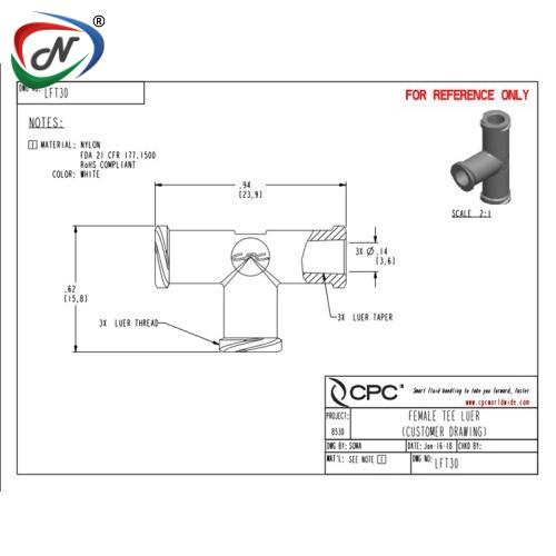 LFT30 Luer Female Tee , White Nylon