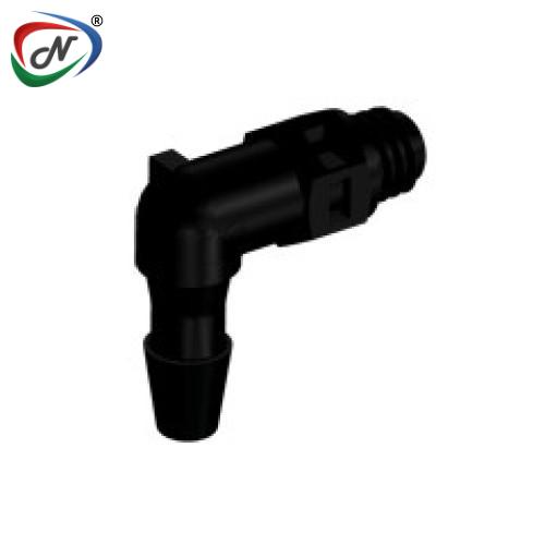ME431 Elbow Fitting, tapered 10-32 X 1/8 HB, Black Nylon