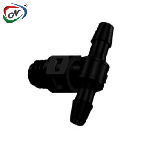 MT331 Tee Fitting, tapered 10-32 X 3/32 HB X 3/32 HB, Black Nylon