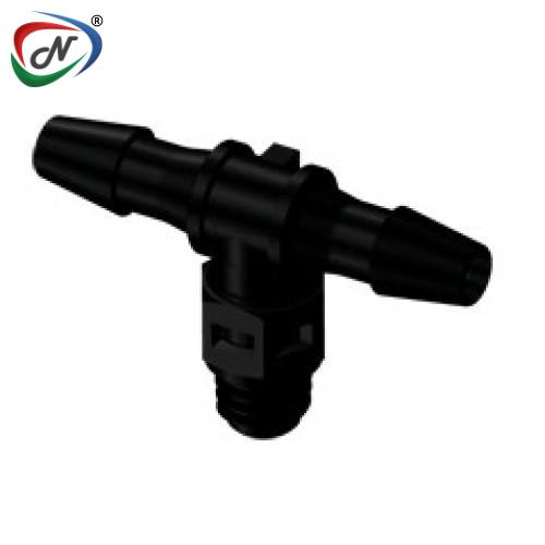 MT431 Tee Fitting, tapered 10-32 X 1/8 HB X 1/8 HB Black Nylon