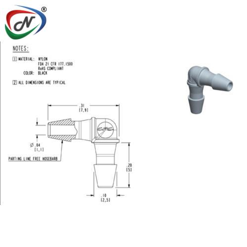 Elbow Fitting, 1/16 HB X 1/16 HB, Black Nylon