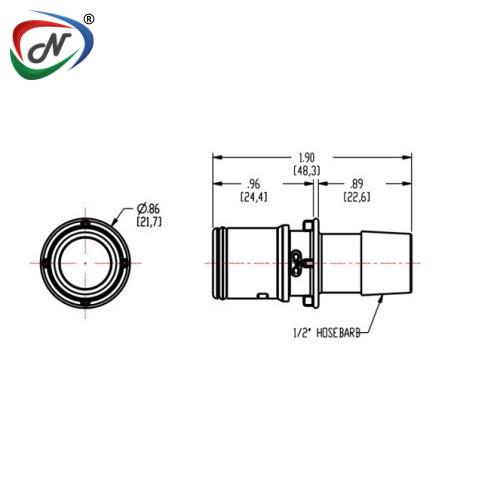 MPX22803M 1/2 Hose Barb NonValved ClassVI Polycarbonate Coupling Insert, ClassVI Silicone O-Ring