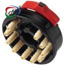 Sixtube™ couplings facilitate the disconnection of up to six individual fluid or air lines. This model includes valves on the insert side and is equipped with the CPC thumb latch. Its snap-in panel mount design ensures a low profile on the front of an equipment panel.