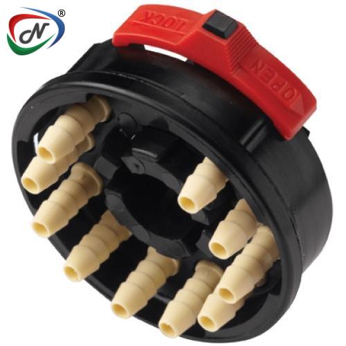 The Tentube™ model is designed with valves on the body side and is available in both panel mount and in-line configurations, providing optimal design versatility. This coupling can connect and disconnect as many as ten lines using a straightforward slide latch mechanism.