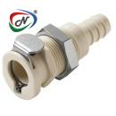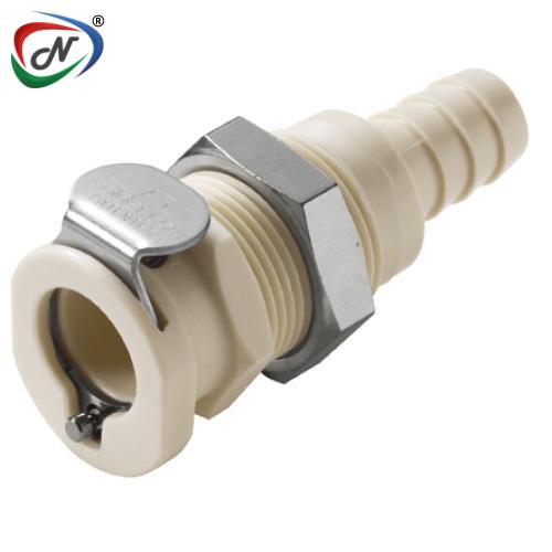 PLC1600612NA 3/8 Hose Barb Non-Valved Panel Mount Polypropylene Coupling Body Nut Assembled