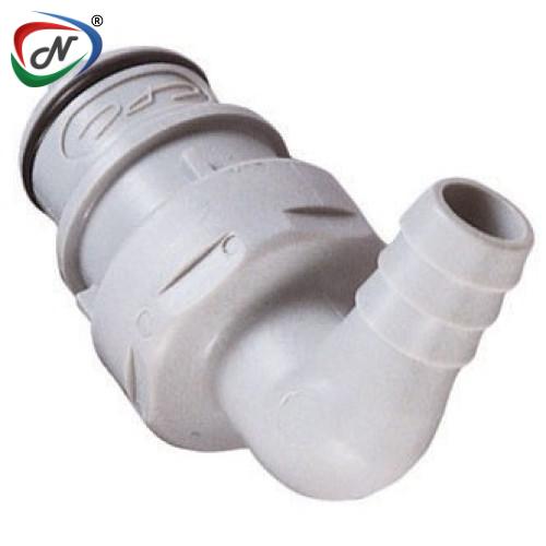 HFCD23612S 3/8 Hose Barb Valved Elbow Polypropylene Insert Silicone Seal