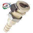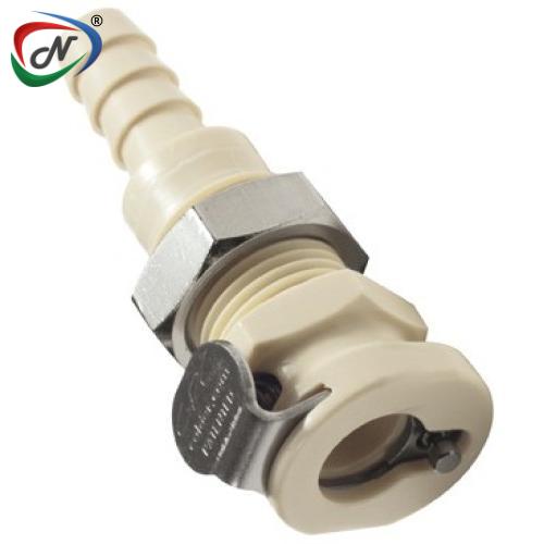 PMC160412NA 1/4 Hose Barb Non-Valved Panel Mount Polypropylene Coupling Body Nut Assembled