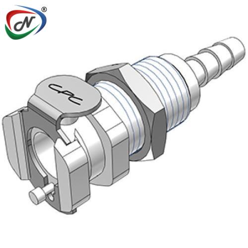 PMCD1603NA 3/16 Hose Barb Valved Panel Mount Coupling Body Nut Assembled