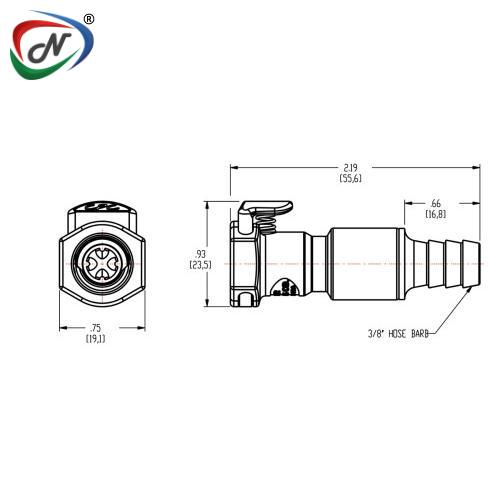 EFCD17412 1/4 Hose Barb Valved In-Line Coupling Body