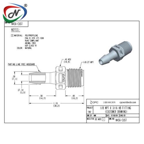 N4S6 Straight Fitting, 1/8 NPT X 3/16 HB, Natural Polypropylene