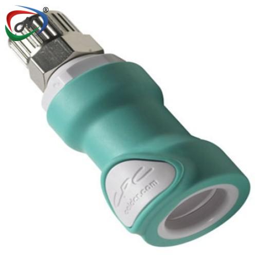NS4D1300606 3/8 PTF Valved In-Line White with Teal Overmold ABS Coupling Body with EPDM O-Ring