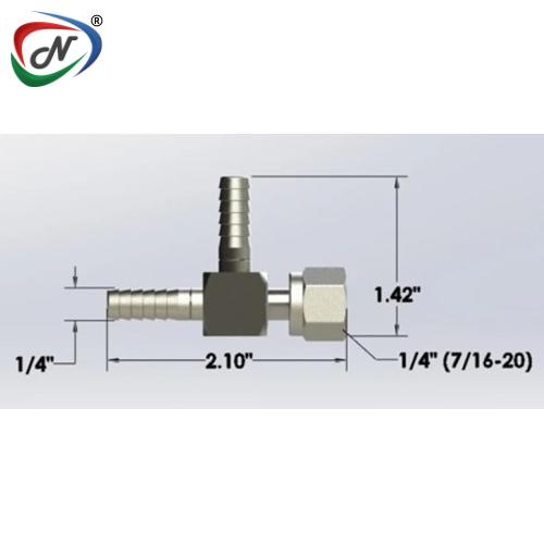 The 1/4" Barb Tee with 1/4" Side Swivel Nut SS (NS7046) is a precision-engineered stainless steel fitting designed for flexible hose branching and secure threaded connections. It features two 1/4" hose barb ends and one 1/4" swivel nut positioned on the side leg, allowing easy integration into fluid or gas systems. Ideal for laboratory, fuel, and pneumatic applications, it offers corrosion resistance, leak-tight performance, and simplified installation in compact or angled configurations.