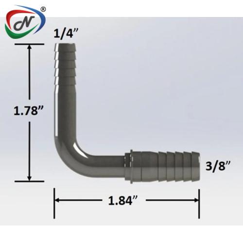 1/4 X 3/8 BARB SPLICER 90 DEGREE ELBOW SS (NS7130)