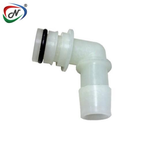 QBE553 AQUATEC PUMP FITTING - 3/8" BARB ELBOW HOSE AND TWO O CLIPS TO SECURE IT IN PLACE – THIS FITTING IS ANGLED AT 90° TO PREVENT THE HOSE FROM DEFORMING OUT OF SHAPE AND RESTRICTING THE FLOW OF WATER.