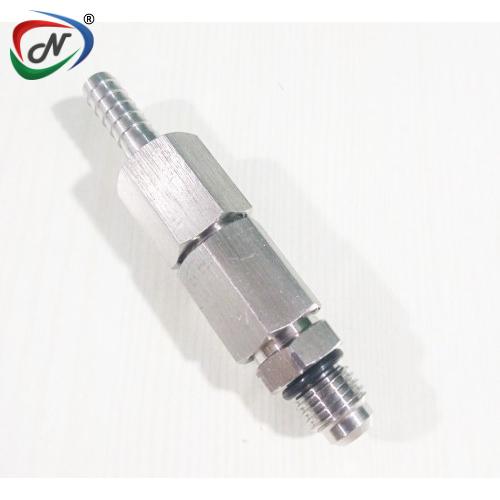 DOUBLE CHECK VALVE, 7/16-20 THREAD WITH 2 MM HOLE, AND THE 1/4" BARB