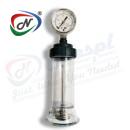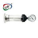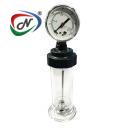 results, it features a clear measurement chamber and pressure gauge. Commonly