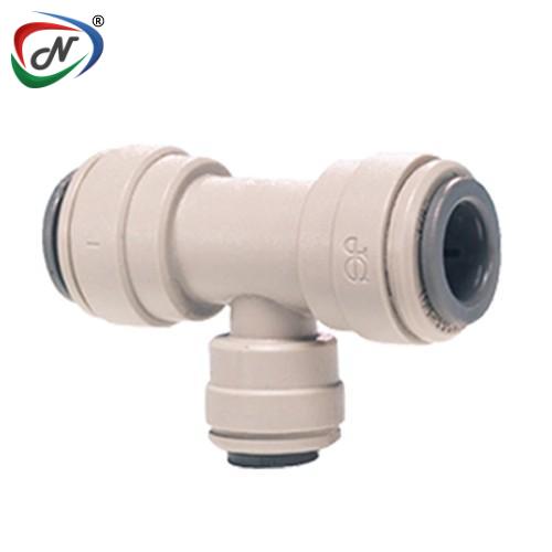 For connecting OD tubing sizes. Makes installations quick and easy. JG Push-fit technology makes connecting tubing quick and easy. Fittings are manufactured in gray acetal with food grade nitrile O-ring, making them especially suitable for applications involving foodstuffs and potable liquids. They are also suitable for air and inert gases therefore can be used for CO2 and nitrogen beverage gas lines, pneumatics, vacuum as well as other applications.