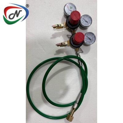 TAPRITE DUAL CO2 REGULATOR -WITHOUT NUT/STEM + 2 PCS ELBOW BARBED + BRASS SHORT NIPPLE