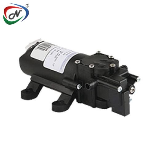 Shurflo catalog # SLV10-AA48, Diaphragm Pump with 12 Volt DC Motor and Automatic Switch. Polypropylene Pump Body, Viton Valves, Santoprene Diaphragm. Inlet Port is 3/8 Inch Barb, Discharge Port is 3/8 Inch Barb. Comes with Trailer Connector.